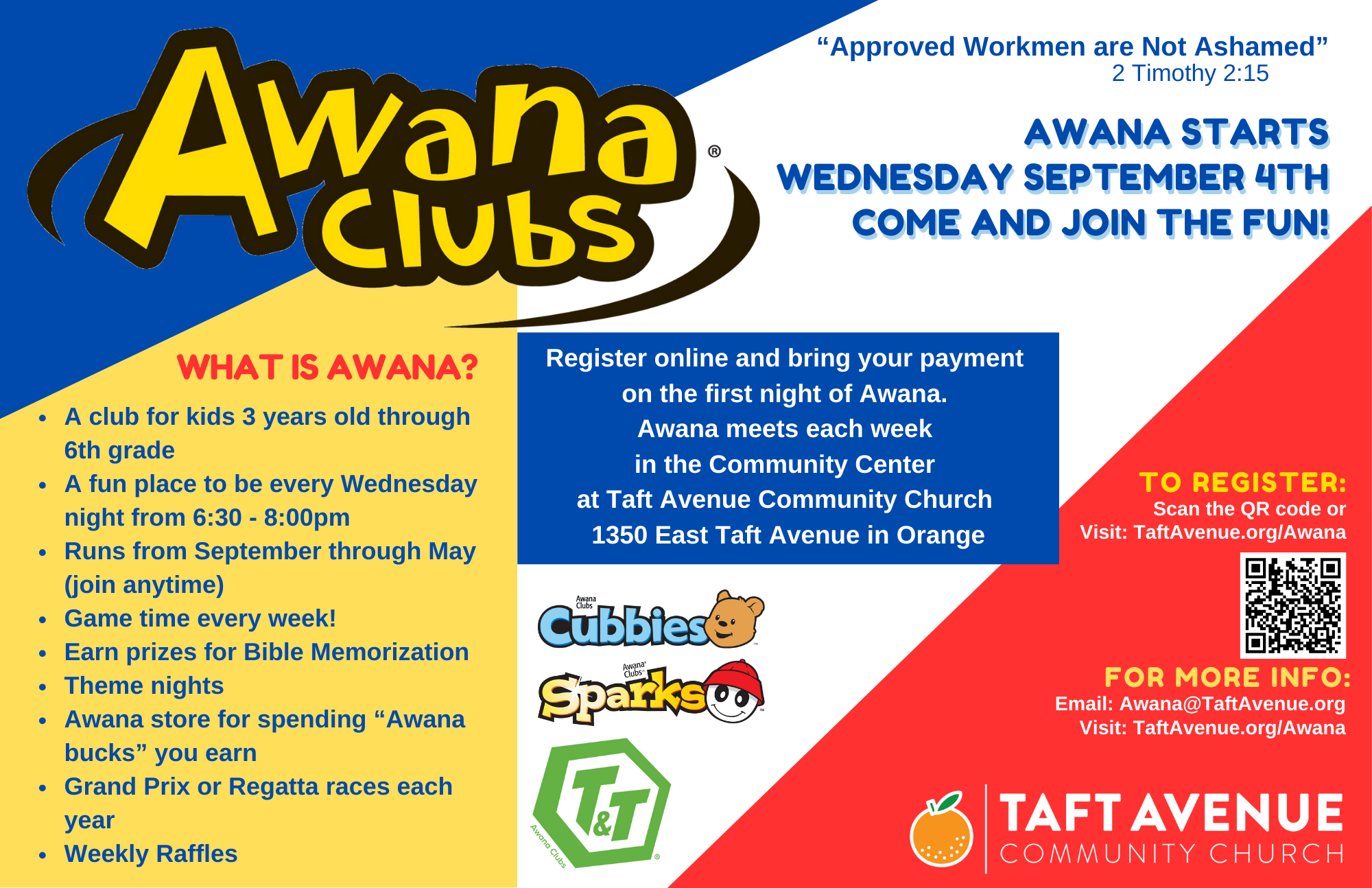 Questions?: Contact us at AWANA@TaftAvenue.org